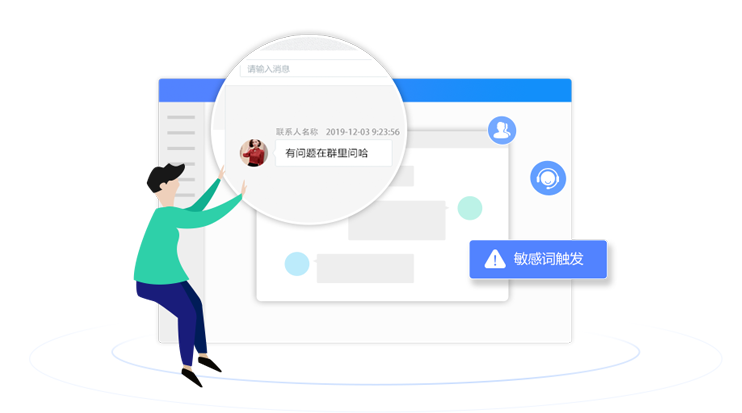 主管可查看員工和客戶的聊天內容,并可以設置規則,對敏感行為 進行記錄,一旦發生敏感行為,主管可及時收到提醒。